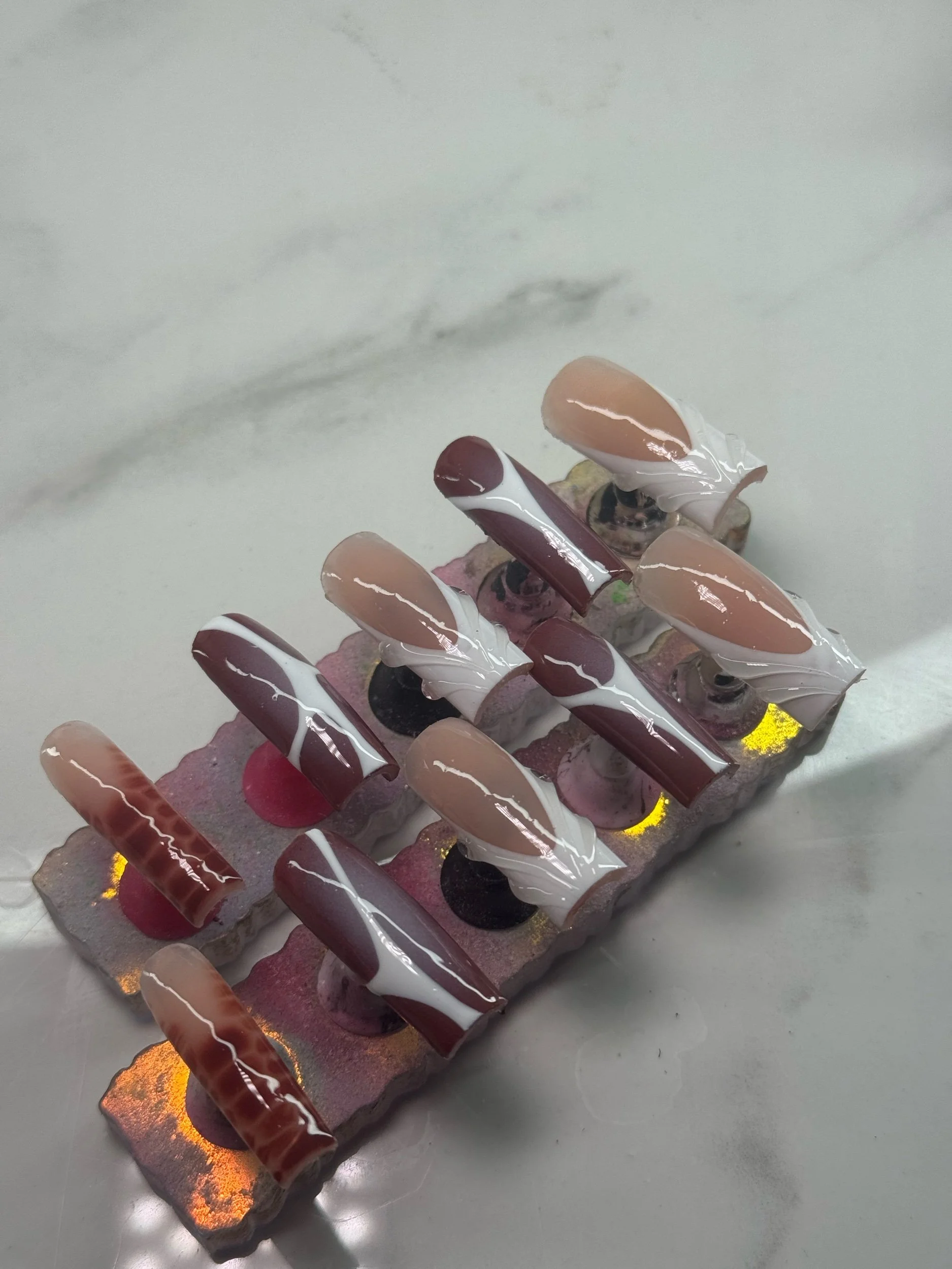 Nail glue , file, buffer , alcohol pads , cuticle pusher etc